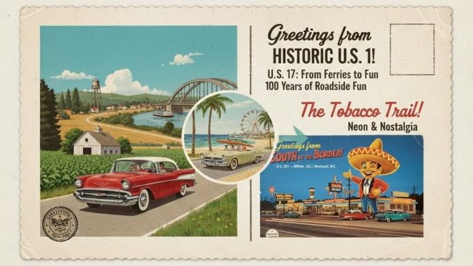 Starting this Saturday morning, February 21 at 6:30 a.m., join BCDollarSaver.com for a special 4-part Saturday series: “The Great Shields: 100 Years of the U.S. Highway System.” From the bootlegger trails of the Sandhills to the neon lights of the coast, we’re tracing the asphalt that built our home.