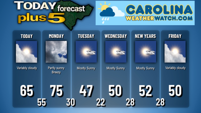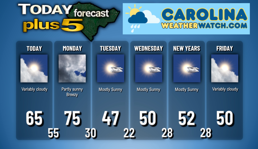 Here is your Carolina Weather Watch Today-plus-Five Forecast: