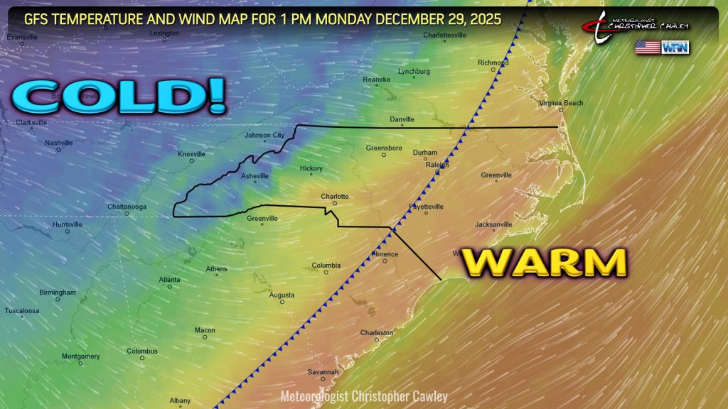 Then our winds take a south/southwesterly flow tonight and lows only drop to the mid 50s. Temps rocket well into the 70s on Monday ahead of a strong REAL cold front.