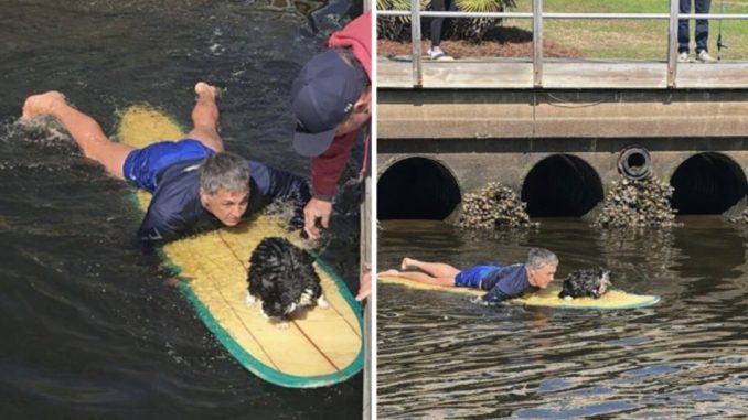 Displaying the kind of calm problem‑solving that comes from years of service, Jason hurried home, grabbed his surfboard, and returned to the marina. He then paddled roughly 20 yards into the drainage pipe – a tight, dark, and echoing space until he reached the frightened feline.