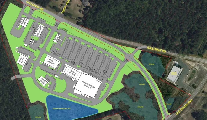 Due to the high volume of traffic typically generated by grocery anchors, the project is currently undergoing a rigorous Traffic Impact Analysis (TIA). Requirements for approval are expected to include: Dedicated Turn Lanes: New left and right-turn lanes on Old Ocean Highway and Galloway Road.  Intersection Upgrades: Potential signaling or roundabout installation at the Galloway Road junction. Pedestrian Connectivity: Sidewalk and greenway links to the adjacent Government Center.