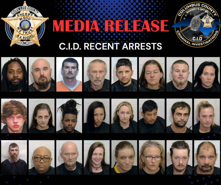 COLUMBUS COUNTY, N.C. — The Columbus County Sheriff’s Office says its Criminal Investigative Division has made a series of arrests in recent weeks as detectives continue working a wide range of felony and misdemeanor cases across the county.