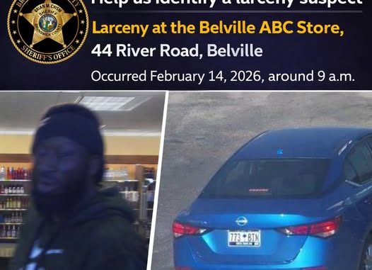 The incident occurred at the Belville ABC Store, located at 44 River Road, on February 14, 2026, at approximately 9:00 a.m.