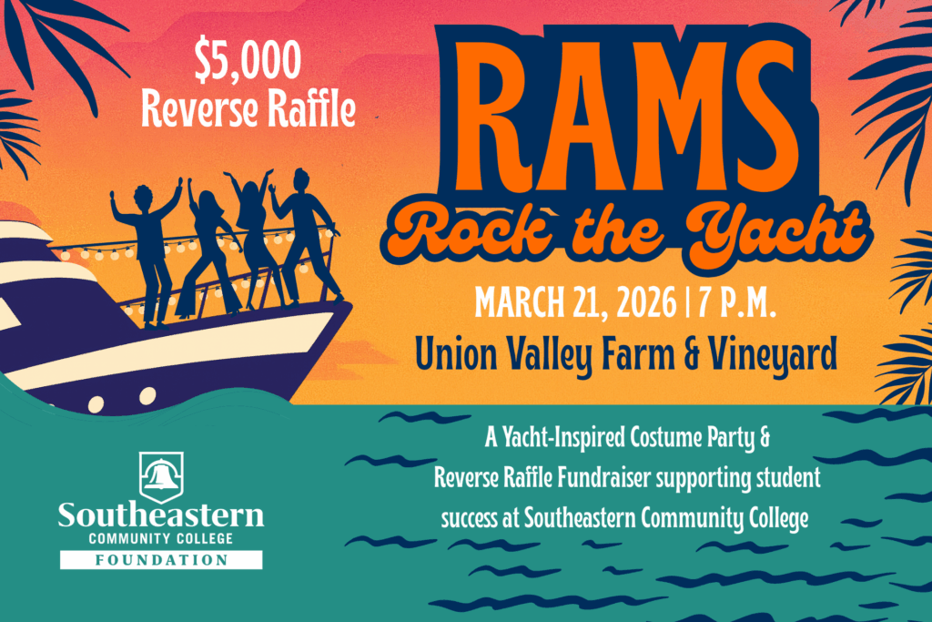 The Southeastern Community College Foundation is gearing up to “Rock the Yacht” at its annual spring fundraiser, set for 7 p.m. on March 21 at Union Valley Farm and Vineyard. The event supports the RamsFund, which fuels student outreach, scholarships, campus programs, athletics, and other areas of greatest need.