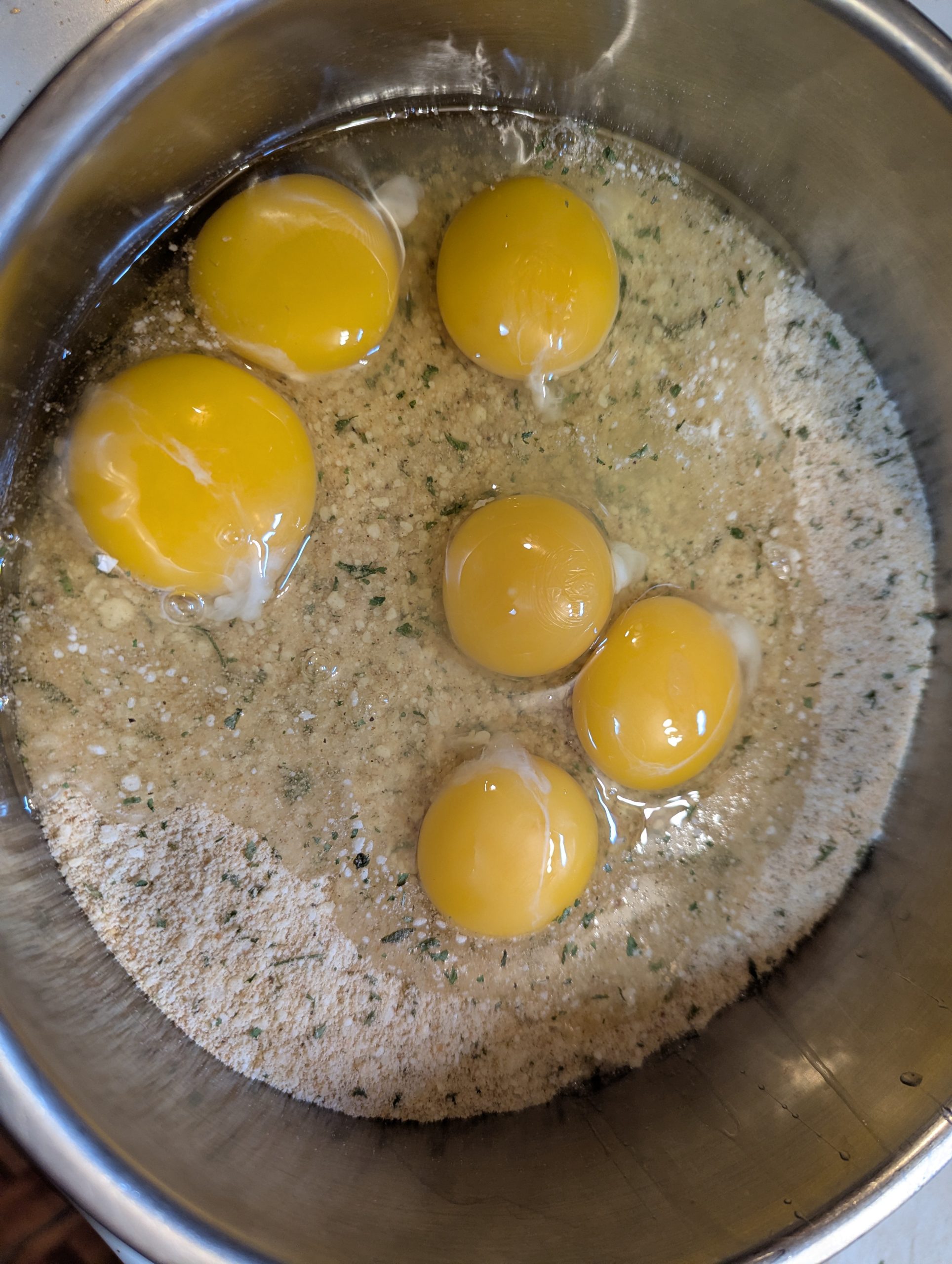Step 2: Add your eggs and mix well. You will need to get in there with your hands.
