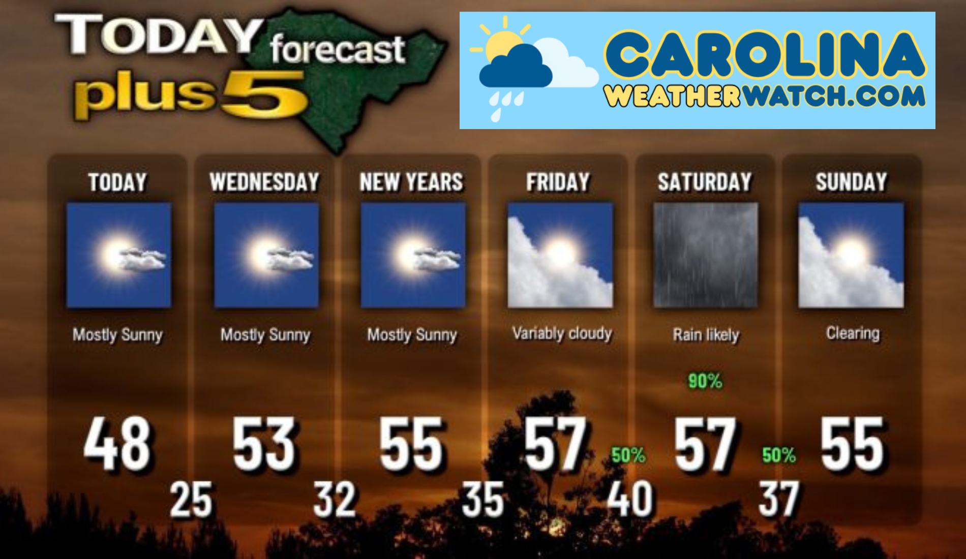Here is your Carolina Weather Watch Today-plus-Five Forecast: