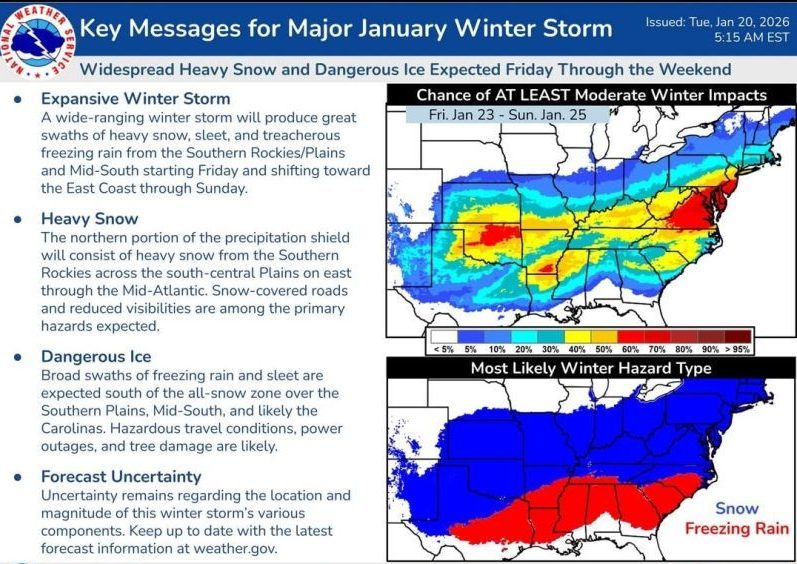 Confidence is growing that a large winter storm will develop late this week, with impacts possible across Southeastern North Carolina from Friday through Sunday.